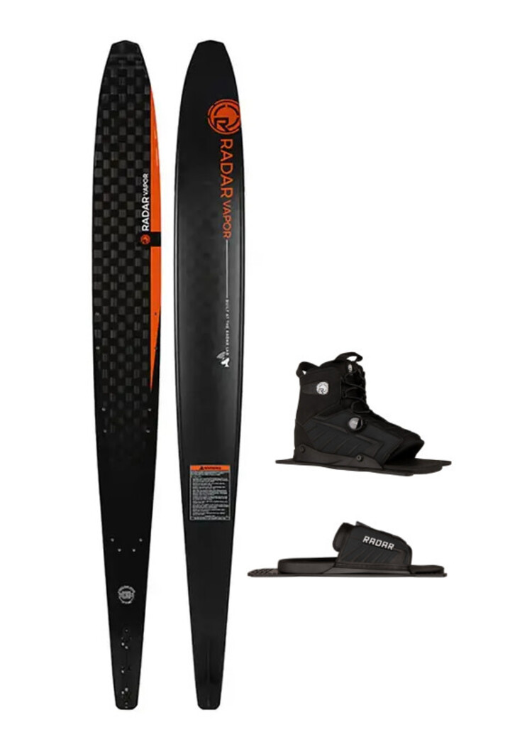 The new Radar Pro Build Vapor Ski 2021 designates a PMI Core and Textreme Carbon infused with Innegra. Using quality features and materials in its design ideal for performance skiing. The PMI is the lightest and most responsive foam, allowing a skier to get more attainable angle out of the turn and the ability to hold it through the wakes. Textreme lets the ski flex instantly and consistently, giving the skier more speed from a wider point. Overall, the ski will feel like it is carrying constant speed from the first cut to the last turn which results in the most effortless ride you will ever experience. Light, fast and ideal for completely tricks or turns.