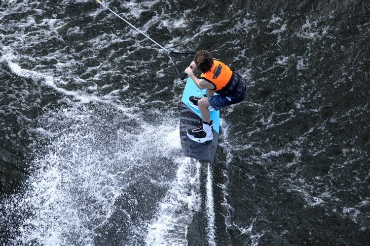 A youth design that recognizes your shoulders and hips are not aways parallel in wake boarding.