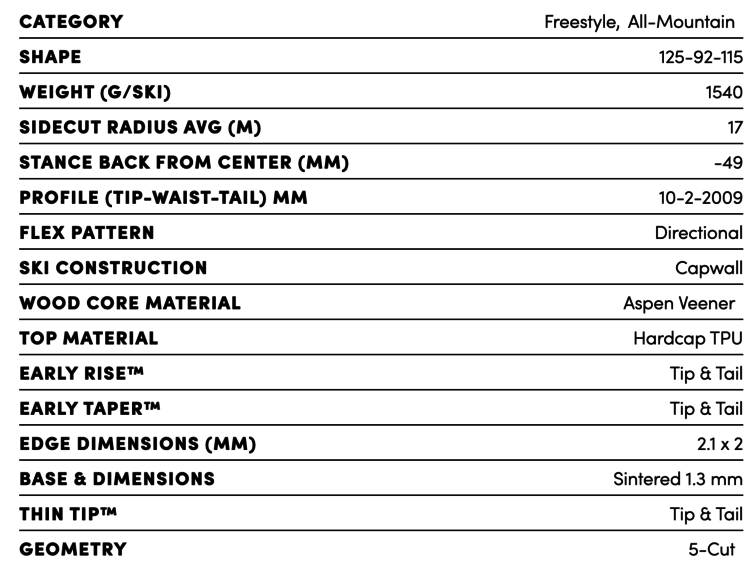 The Blade Optic 92 is the only ski in the Blade Optic Collection that does not harness the power of metal throughout the ski, but don't let that deter you, this award winning ski rips. With the abscence of metal, the Blade Optic 92 is more lightweight, nimble, and quicker edge to edge as compared to its counterparts.