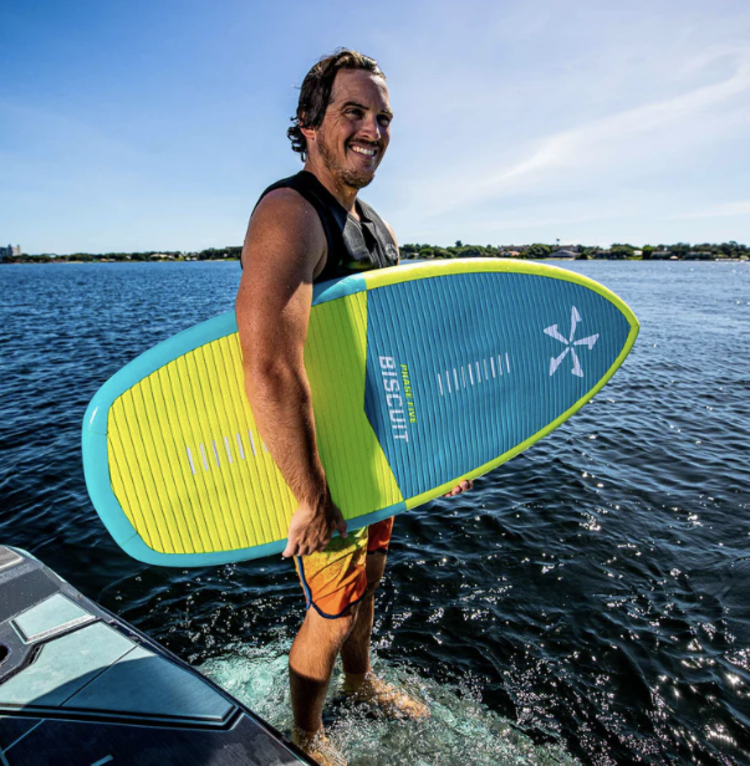 Your all around good fun, entry level surf board is the Biscuit. The outline of the Biscuit allows the board to be a Wave Hog as you will be struggling to keep this beast off the wave. It also is a very forgiving and friendly board with a full EVA grip on the deck of the board and soft rails that won’t catch you when you fall. It comes with a twin FCS fin set up to keep it nice and loose when your ready to get radical on it!
