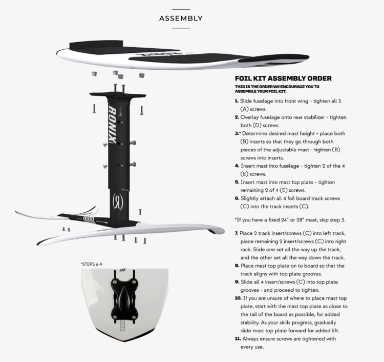 Purchasing This Complete Foil Kit - Every complete Ronix set up comes with all necessary hardware, protection sleeves, bags, etc. The only thing you will need is a foil board.
