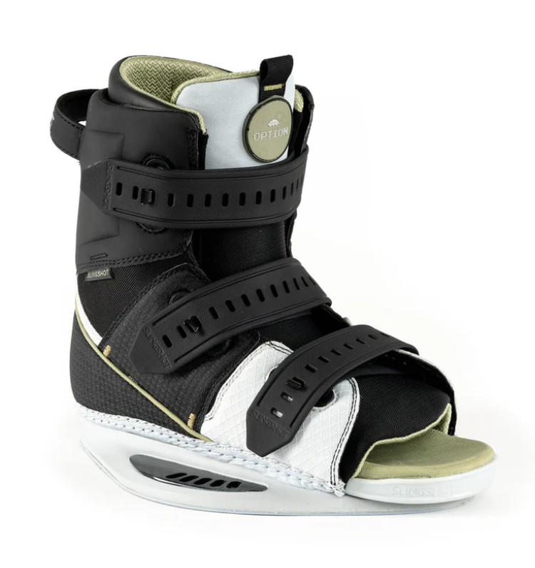 The Option boot is the highest performance open-toe wake boot on the market. Built to accommodate a larger range of shoe sizes than our closed-toe boots, the Options are an excellent choice for sharing amongst a family or group of riders. The Gummy Strap Closure System allows riders to strap in tight with ease and trust that the boots will hold tight throughout the entirety of their session. Throw some built-in J Bars, a 3D-molded tongue and Bottomless Base System all into the mix and it's safe to say that when it comes to open boots, the Option is the top choice.
