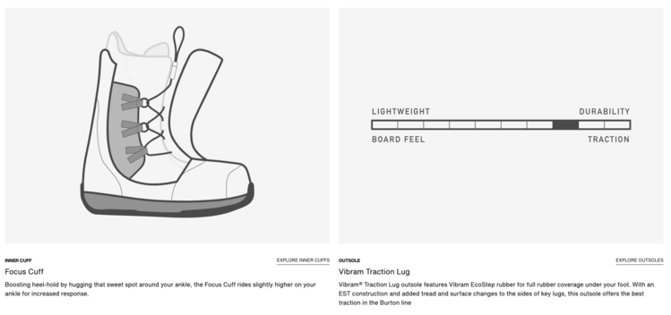 Step On Soft boots feature enhanced flex and an updated backstay for a well-rounded, responsive feel that's more forgiving than the standard flex.