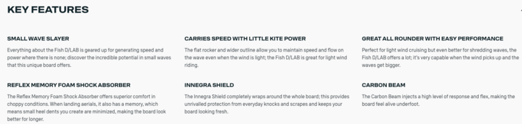 • The Duotone Fish D/LAB is a manoeuvrable and agile high-performance machine that will inspire your confidence in small to medium waves.