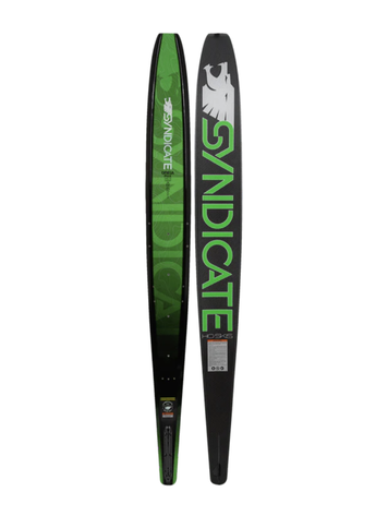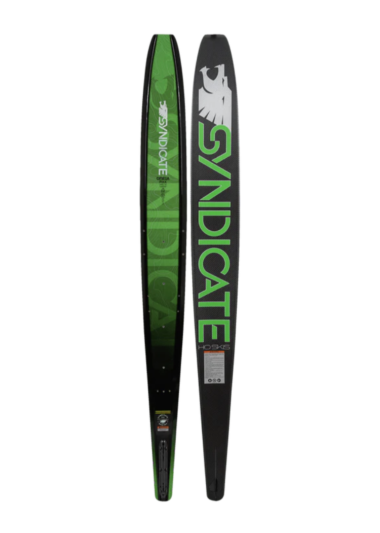 Construction: The Syndicate Omega Max Mark II is built with our proprietary Eco Performance Construction, containing 35% natural glycerin resin, a by-product of biodiesel production. This makes it quicker rebounding creating a lighter feel underfoot. Paired with our Syndicate Construction, a proprietary combination of aerospace carbon fiber and ultra-lightweight PVC Foam Core Technology for a lighter, more responsive ski that utilizes the world top materials for unparalleled performance. The ski base features Carbon Fiber Speedskin, an advanced laminar textured material to reduce ski drag & increase speed, with 20% less ski weight!