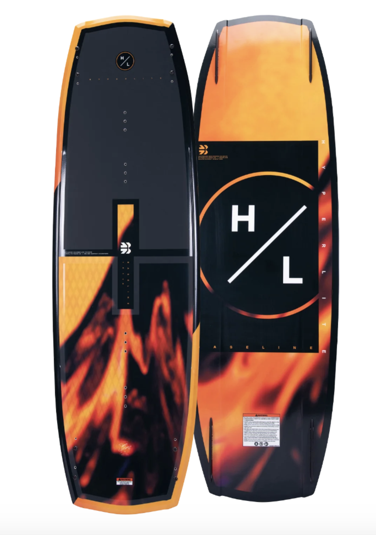 Shaun Murray and Greg Nelson agree that a solid foundation greatly increases a rider's learning curve. Hyperlite's Baseline is shaped specifically for creating that base and solid foundation. The Baseline has a wider overall profile built atop a Continuous Rocker, delivering a smooth carving board that gets more pop off the wake due to its increased surface area. The Variable Edge Design is forgiving between the inserts but then sharpens towards the tip and tail to provide the strong edge hold necessary for generating speed into the wake. The Baseline is simple and both Murray and Nelson believe that inLess is Morein in their shared shaping philosophy. The center of the base is clean, clean water flow creates a smooth ride and softer landings, the dual tunnels easily allow water to enter and exit at the Baseline's tip and tail. Take it from two legends, the Baseline is the board for your wakeboard adventure.