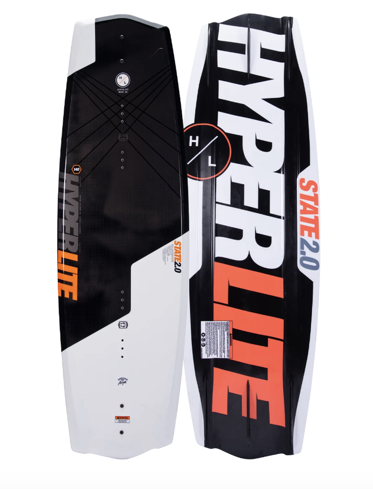 Creating a shape to take riders' skills to the next level was the goal behind the State 2.0. Learning from other asymmetrical designs, we found that creating a shorter but more effective edge on a rider's toe-side made hard to learn wake jumps a lot easier. This is because there is less rail to initiate when applying toe-side pressure. Once set, the smoother toe-side transition is then held by the State 2.0's thinner profile molded-in fins, creating less drag and a better release off the top of the wake. Subtle Molded-In Toe-Side Footbed Risers were also added to help a rider create more leverage when pressure is applied. The longer, more traditional heel-side edge compliments this asymmetrical design by allowing the natural body position of a rider to generate stability and speed into the wake without a loss of pop due to reduced surface area. The State 2.0 has been tested and proven to be the best choice for a rider looking to master the foundations of wakeboarding.