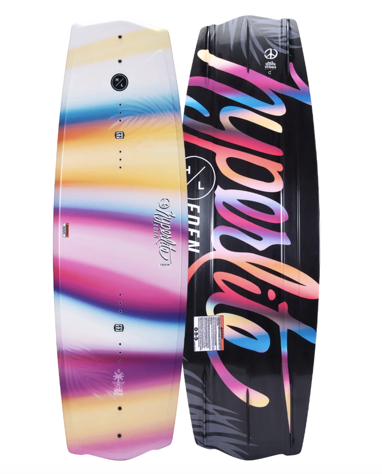 Creating a women's shape to take their skills to the next level was the goal behind the new Eden 2.0. Learning from other asymmetrical designs, we found that creating a shorter but more effective edge on a rider's toe-side made hard to learn wake jumps that much easier. This is because there is less rail to initiate when applying toe-side pressure. Once set, the smoother toe-side transition is then held by the Eden 2.0's thinner profile molded-in fin, creating less drag and a better release off the top of the wake. Subtle toe-side footbed risers were also added to help a rider create more leverage when pressure is applied. The longer, more traditional heel-side edge compliments this asymmetrical design by allowing the natural body position of a rider to generate stability and speed into the wake without a loss of pop due to reduced surface area. The Eden 2.0 has been tested and proven to be the best choice for a rider looking to master the fundamentals of wakeboarding.