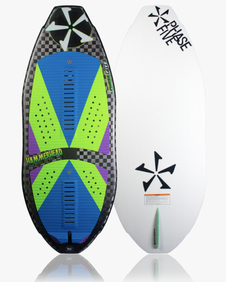 The Phase Five Hammerhead LTD Wakesurfer is built with a textured deck resulting in an extremely noticeable weight reduction for even more performance. You will notice the ChromaCarbon beautifully laminated into the deck. The bottom is built with Innegra for optimal speed and strength. The ChromaCarbon series are some of the best looking, high performing wakesurf boards produced by Phase Five to date. Features a single fin setup loaded with our 1” Skim Fin.