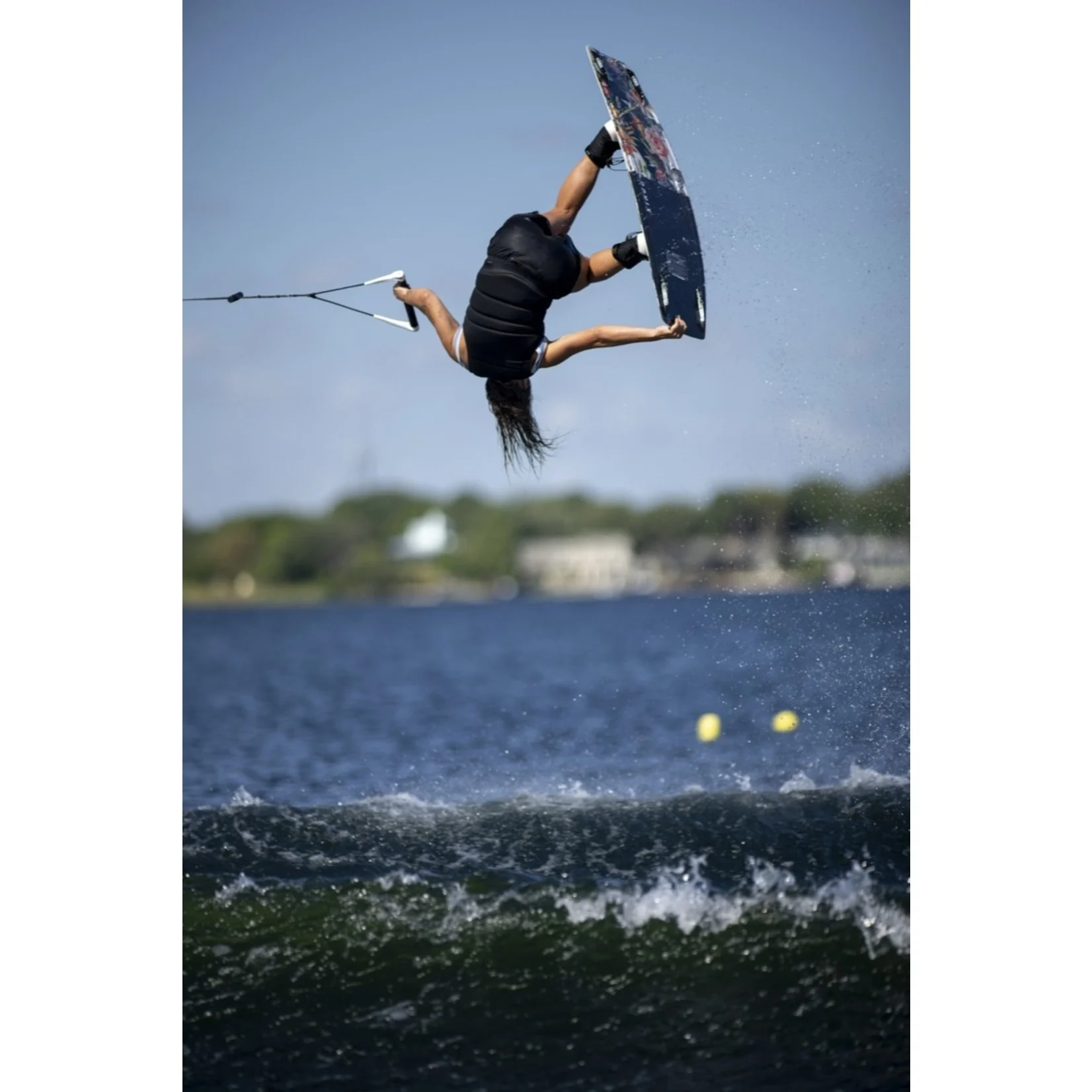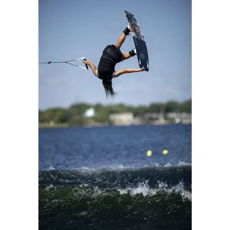 A women’s board that adapts to your riding style. This board has the rare trait of adapting to you, regardless of your style or ability. Last year we took one of our bestselling all-purpose series that rides without stereotypes and made it lighter, delivering more feedback, and noticeably softer landings. The QTM with its hybrid rocker ranges from smooth/low maintenance turns to wide open high-speed cuts. With fast, predictable takeoffs, to explosive wake to wake jumps, this is a series that truly covers the spectrum. Riders that approach the wake flat into the wake will notice a strong, explosive 3-stage lift. If you approach the wake while on rail you will notice a smooth, blended rocker line with an uninterrupted fast take-off and landing. Riders who tend to distribute their weight evenly will experience a freeride, floaty feel when they initiate turns. On the flipside, riders can experience hairpin turns with quick edge transitions if they shift their weight to the tail of the board.