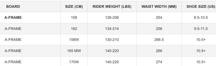 One of the longest-running classics in the Arbor collection – the A-Frame is built on the System Camber platform featuring Grip Tech and 3D Fender Technology. Its large radius sidecut and carbon inlay stringers have it engineered for powder and control, but at the same time, a capable daily driver.