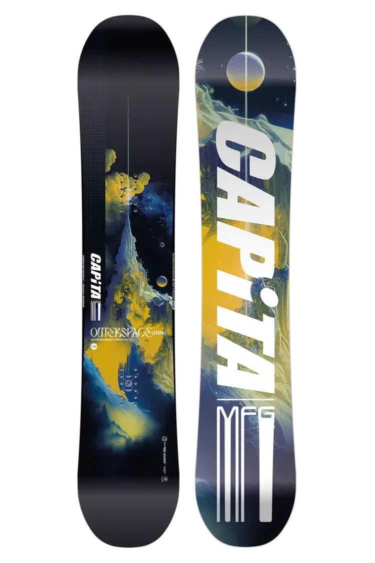 The Outerspace Living features a true-twin freestyle shape blended with an all-terrain camber profile built for freeriding. Inspired by the award-winning Mercury series, positive camber lies underfoot for power retention while an elevated nose and tail help the board swim through variable conditions. Do you want to crush laps through the park after the powder is tracked out? If so, then this is the board for you.