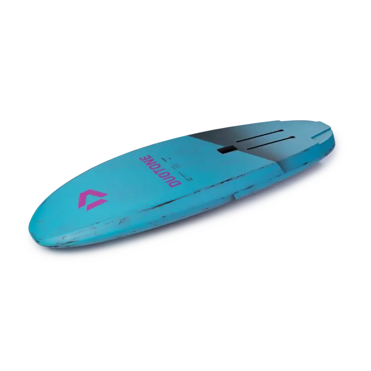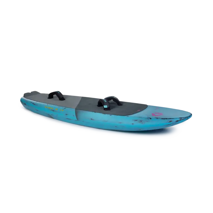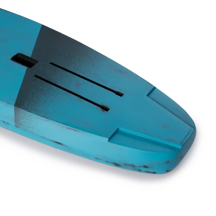 The board is designed with a single concave to flat bottom shape for early planning and take-offs. Its raised front foot deck angle provides a more playful and responsive feeling while up on the foil, enhancing your overall riding experience through maneuvers and when surfing swell. The higher nose rocker helps prevent catching on the water and ensures smooth acceleration.