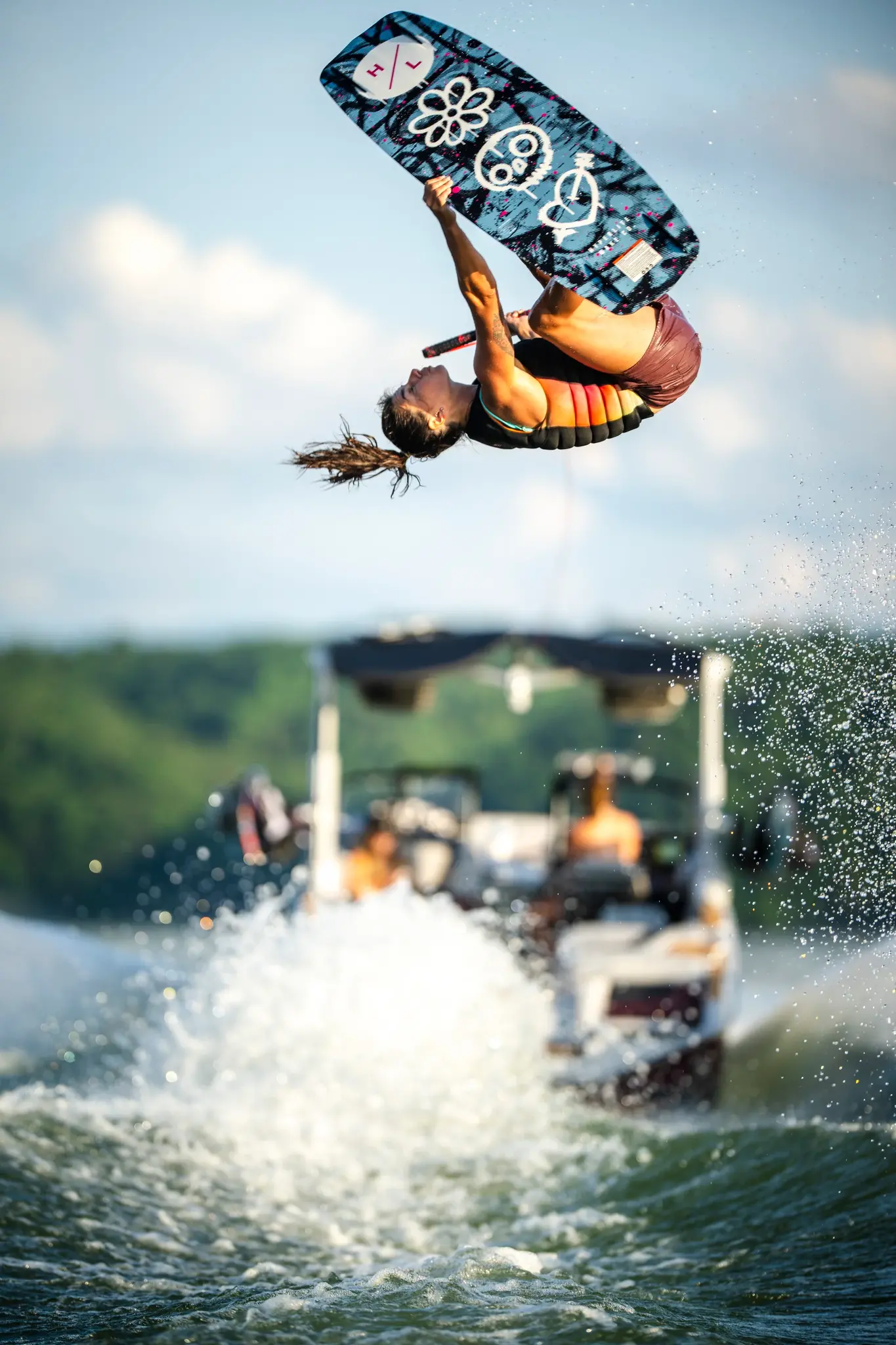 Our Aussie Sheila is back with a brand new shape named the Journey, fitting Bec as she’s had an amazing one in the world of wakeboarding. The Journey features a 3-Stage Rocker for great pop off the wake, any size wake that is. An aggressive edge approach is achieved with a cupped rail at tip & tail. This is a forgiving ride as well; between the bindings the Journey has a beveled edge and the landings are cush thanks to the Soft Landing Spine. Satin Flex delivers a flex pattern ladies enjoy and the Journey is available in 3 sizes so groms and adults can shred the Journey in 2025.