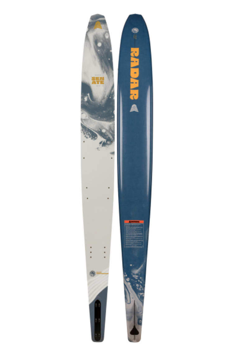 The Senate’s ability to carry speed is unmatched in the industry. This speed allows the skier to maintain width on the boat ultimately giving a sense of freedom sought after by those that ski in the course as well as those ripping open water turns. By taking our Vapor shape and adding two tenths of an inch in extra width we have created a stable riding platform. This platform creates the balance needed for a skier to feel at home, while the profile of the ski allows the skier to feel the speed and angle sought after at any level.