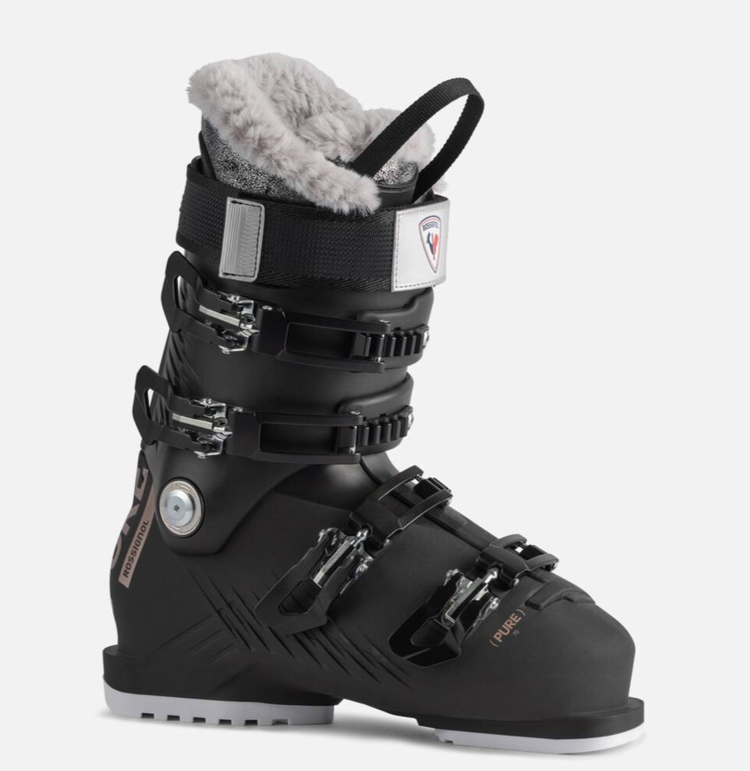 The right fit. The right flex. The women's Rossignol Pure 70 ski boots deliver the comfort, flex and control to ski all day. The Sensor Blade shell is engineered for reduced weight and efficient energy transfer directly to the ski. A women's-specific 102mm last offers an accommodating fit for comfort that lasts all day. An adjustable flex lets you dial in the performance to match your skiing. Wintherm® insulated liners are customizable for superior comfort and warmth.