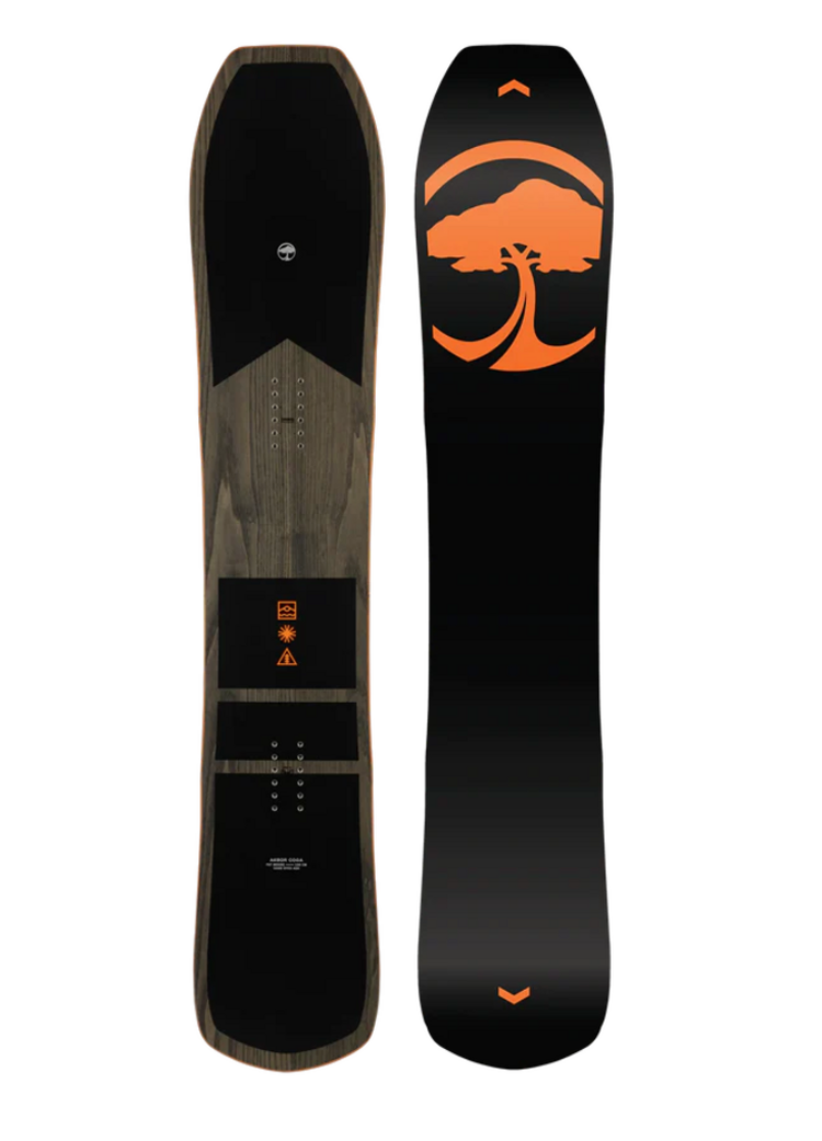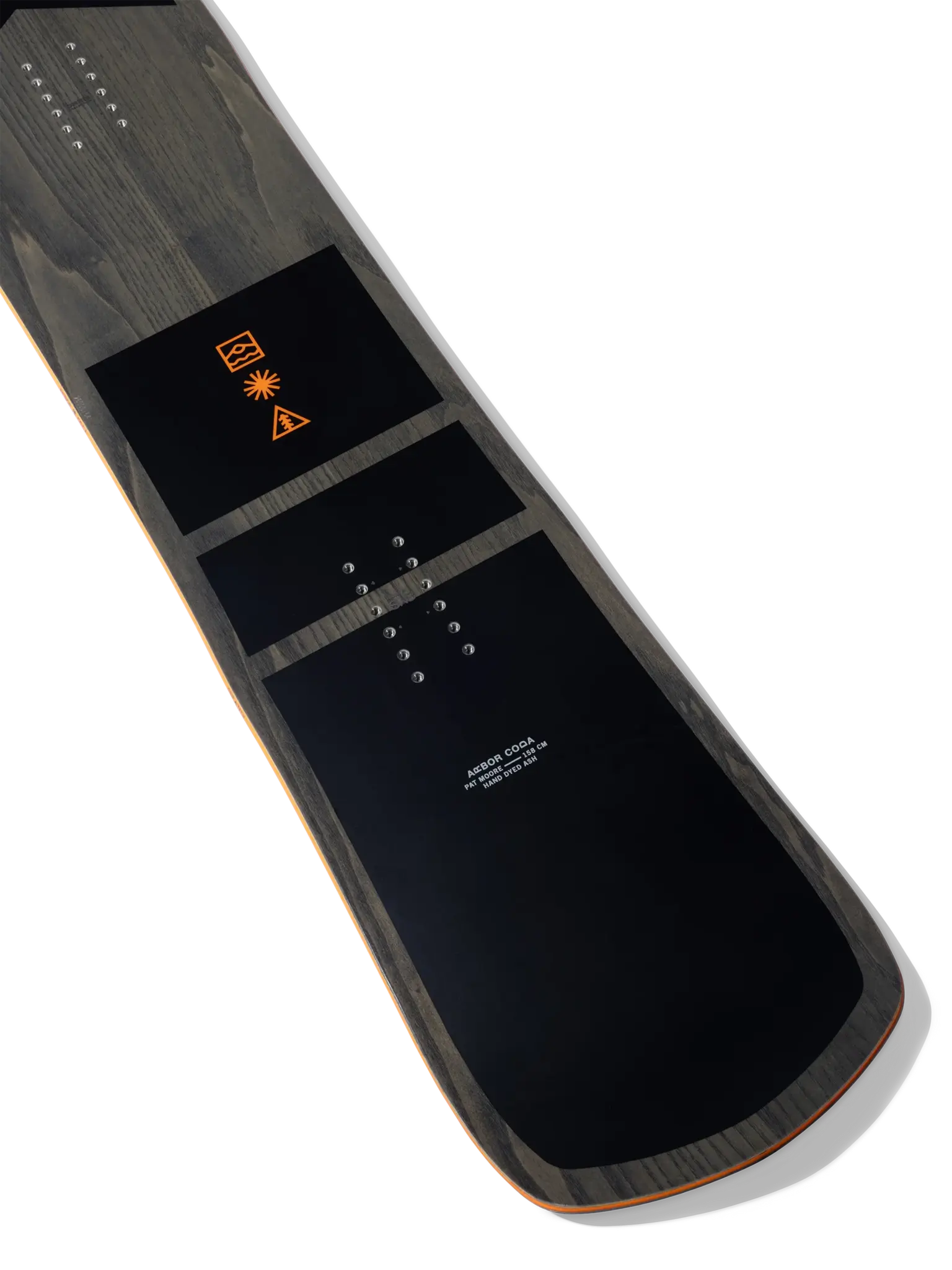 The Coda is Arbor’s premier all-mountain, cross-terrain and performance-ready franchise. Available in an upgraded Carbon offering for next-level snap and response, the Coda’s powerful directional camber profile is supported by Grip Tech Contact Points and offers a slightly wider platform tip and tail designed to drive clean turns at high speeds through mixed conditions. Inspired by the many miles of Pat Moore, this Coda shape rips the resort, is backcountry ready – but built to be an absolute slack-country weapon.