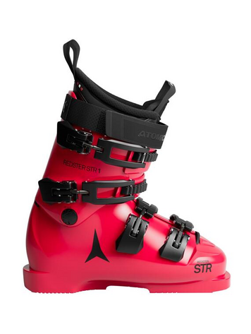 The Atomic Redster STR 1 LC is a forgiving 70-flex race boot designed for up-and-coming racers, with a lower cuff to fit shorter legs.