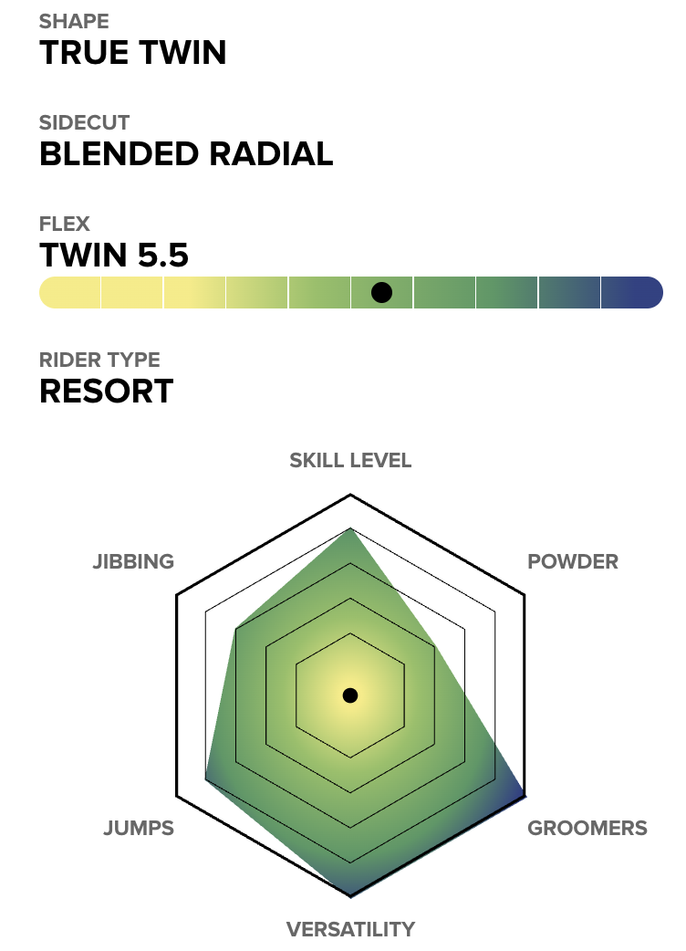 the world's most coveted snowboards, refined with flex patterns and geometric sizing to cater to women's specific riding preferences.