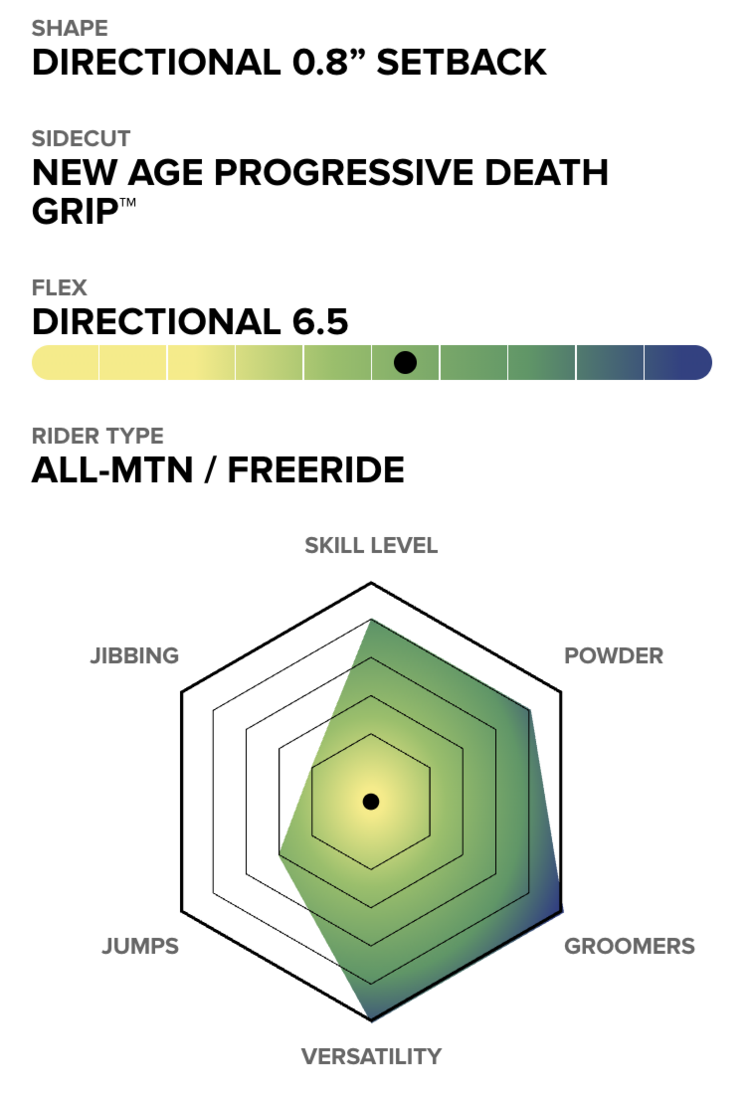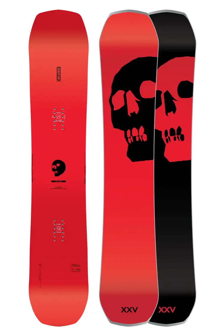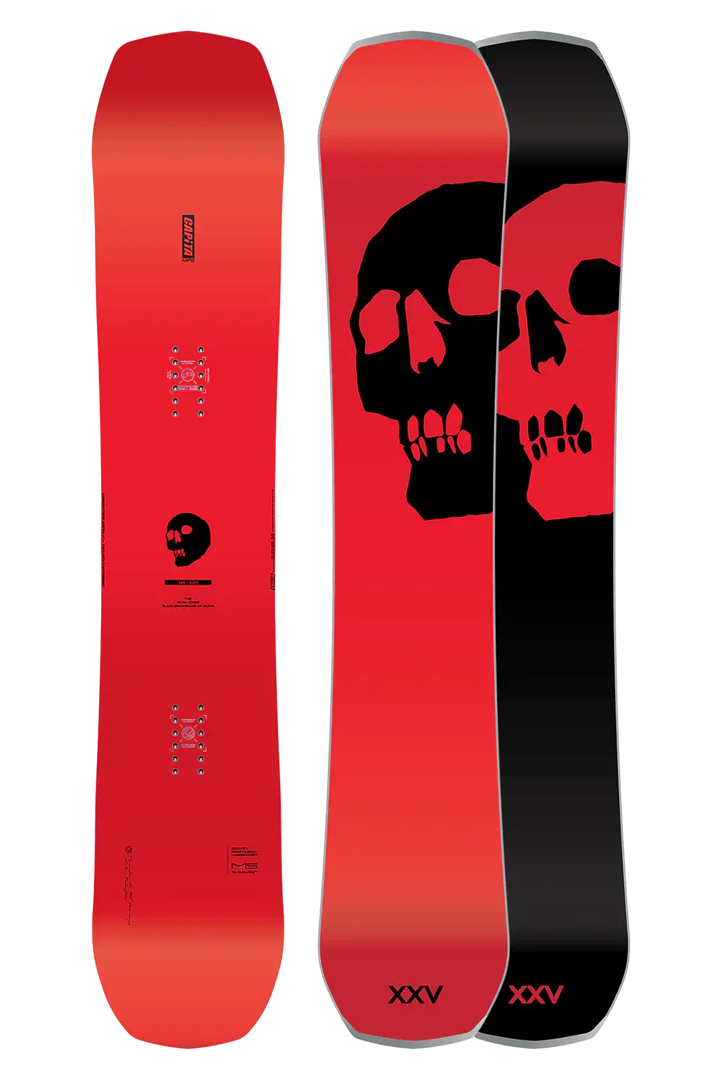 The Black Snowboard of Death has achieved legendary status as an all-terrain slayer, boasting an impressive collection of accolades. Over the last 25 years, it has undergone constant evolution and modification in the relentless pursuit of perfection. The one constant amidst these changes has been its iconic name. Featuring a finely balanced directional shape and high-powered construction, this custom-designed rocketship offers exceptional control, enabling riders to elevate their skills and navigate varying terrain and changing conditions with confidence.
