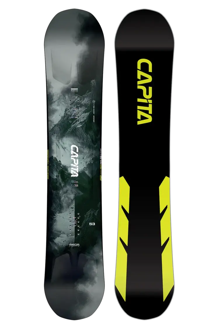 Ultralight and ultra-versatile, the Mega Merc harnesses its 3D Thermopolymer Starship Core™ with an all-new Hybrid Holy-Sheet™ Tri/Tri MEGACARBON™ configuration and MEGADRIVE™ XT base for unparalleled all-mountain performance.