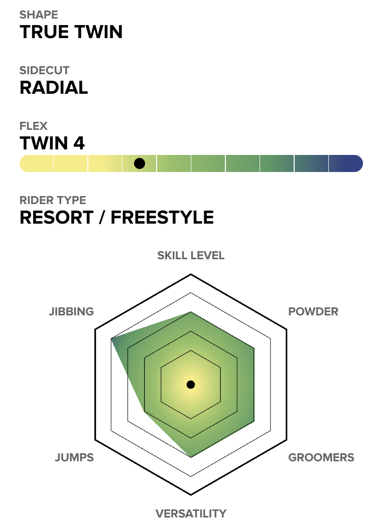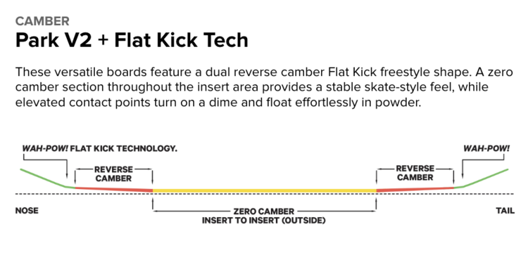 This very forgiving reverse camber shape provides a fun experience for beginner to intermediate riders looking to expedite the learning curve and take their riding to the next level on many different types of terrain.