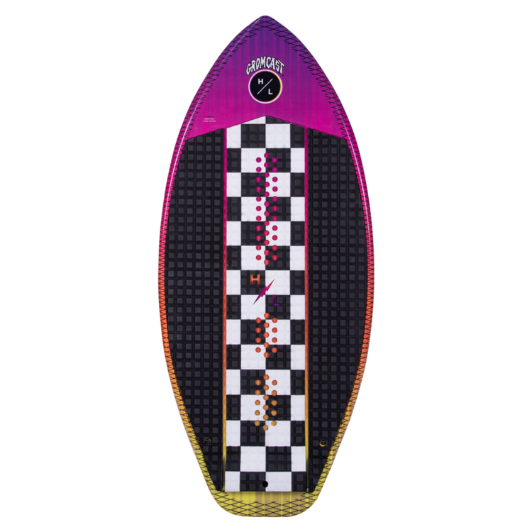 Kid’s Unite behind the boat, this time while Wakesurfing with Hyperlite’s Gromcast. Spawned from the Broadcast series, the Gromcast is an easy to surf fun shape for all kids to enjoy. The wide profile provides the needed surface area but the Gromcast is short and easily maneuvrable so kids can begin learning power carves and spins. Customize the ride with 3 removable fin options and relax on the cushy, comfy Molded EVA Traction pad. Do not make your groms ride a plank, get them on the Gromcast so you can sit back and watch them shred.