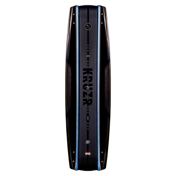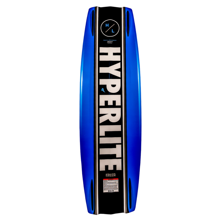 Hyperlite’s new KRUZR-GLS is a collaboration between R&D head Aaron Stumpf and Rusty Malinoski. Aaron shaped Rusty’s 1st first ever pro model, the Marek and every board since. This board is a departure from the aggressive style ride Rusty is known for, this new shape is a nimble cruiser. The KRUZR-GLS has more surface area than any other board but has been shaped to maintain a lively feel with a minimum thickness profile. More comfy than previous shapes, Rusty feels all ride styles and ability levels will enjoy this new shape which will surely suit riders in the 200+lbs range. Aaron brought new features like the Boneline Grab Rail and Cupped Tail Rail design allowing the wider board to sit deep in the water for a solid edge hold on approach. The Molded Landing Feature is included while the overall base design is simpler, delivering that cruisy flowy feel between tricks and carving the wake. Rusty still enjoys smashing dubs and going big, the KRUZR-GLS offers more pop and landing stability for the biggest of airs.