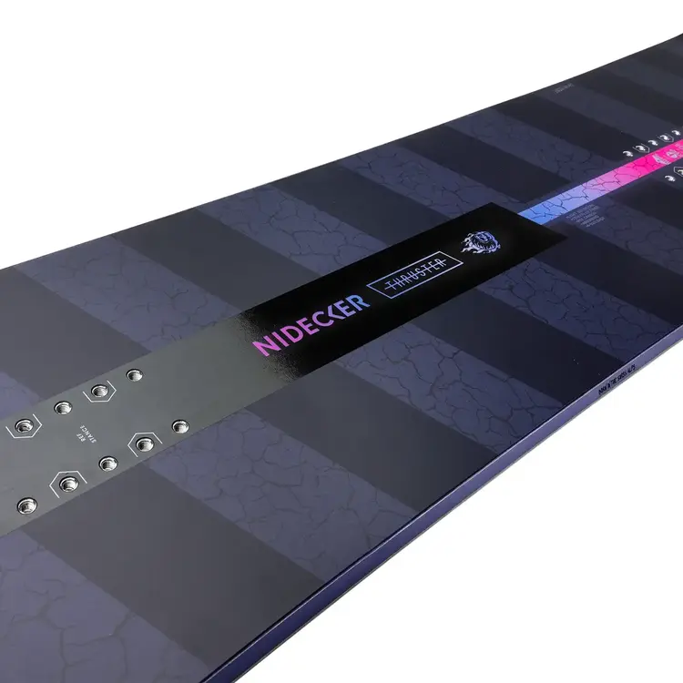 We’ve poured decades of experience shaping performance snowboards into this all-mountain charger. The Thruster is built on the lightest core in the Nidecker line, with a powerful camber profile and a super dense sintered base that minimises drag. From early morning corduroy to blower pow, it's a versatile speed machine featuring 3D design in the nose for super smooth edge changes. Added carbon dampens the ride even at terminal velocity.