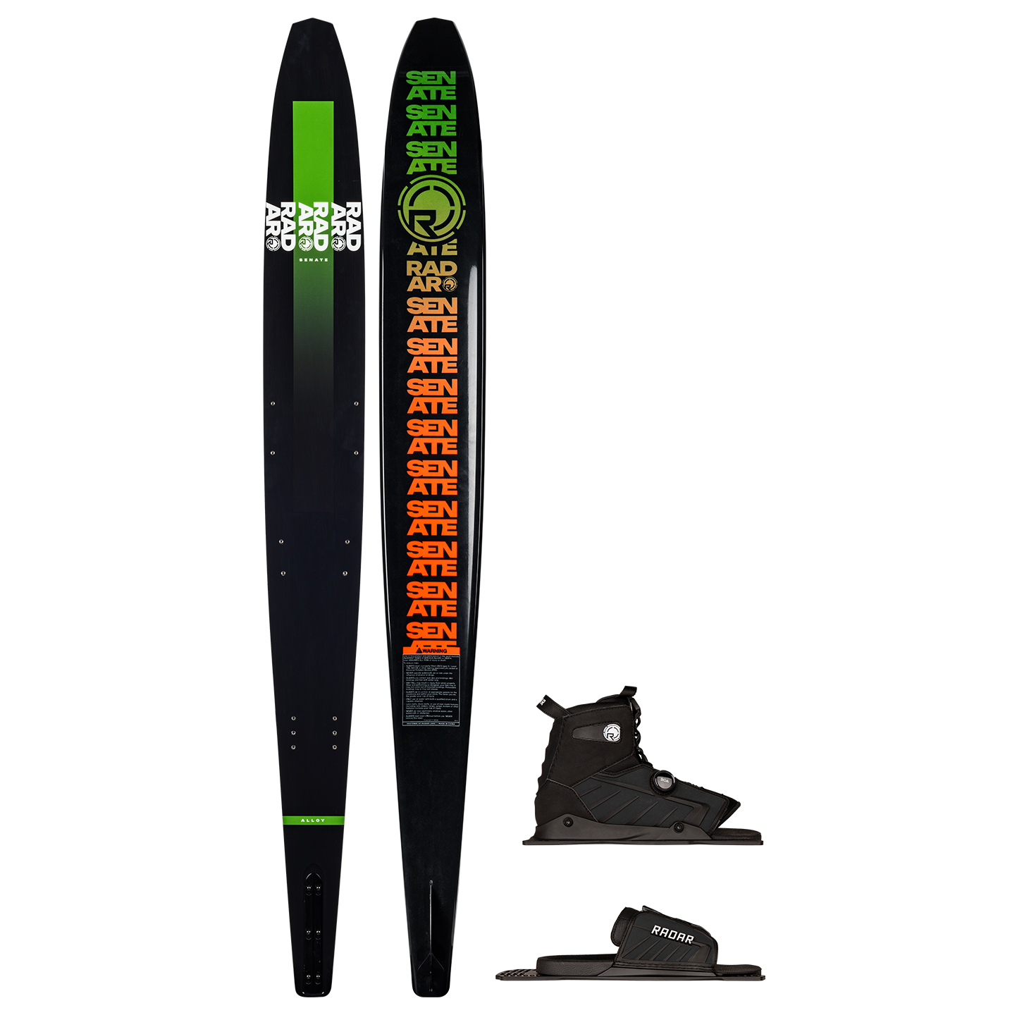 The Senate series pours fuel on your slalom ski fire. Proudly, it is the most widely heralded, highly regarded shape in our line, simply because it works so well across a wide spectrum of skiers. We start with our new Vapor shape and mindfully add two tenths of an inch in extra width between the tunnel and the edge bevel. As opposed to simply scaling the ski wider, this keeps the active wet surface the same as the Vapor, meaning it’s going to turn and grip like a Vapor does. Lightning fast where it needs to be and controlled through the turn, we have found the ideal surface area and shape for flat out performance at slightly slower speeds. From the seasoned veteran looking to get back to their prime, to the 34 MPH competitor looking to conquer new line lengths, the Senate Series has a model that will have you rethinking the limits of your personal waterski goals.