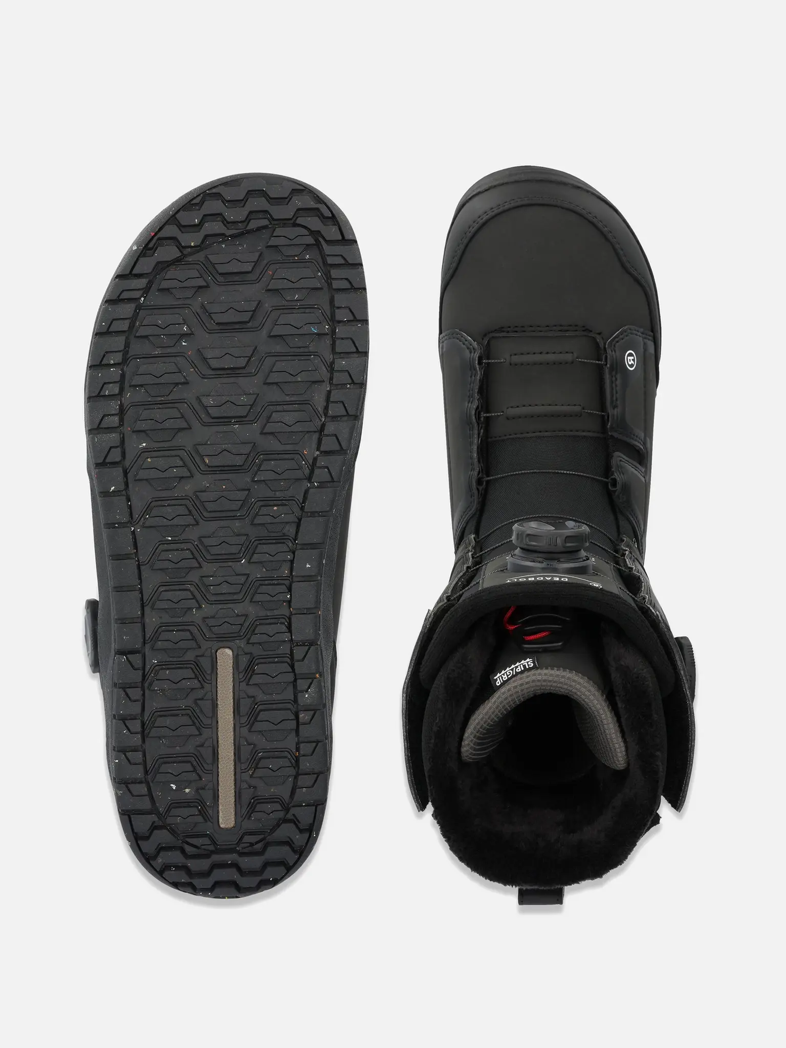 The Deadbolt Zonal is packed with technology to make your life on-hill a tad easier, like an Intuition™ Support Foam Liner, our BOA® Zonal Fit System for extra hold and our liner integrated Tongue Tied™ Hybrid Harness, where our liner lace pull closes our liner harness and Tongue Tied™ system assuring an optimal fit. The Impact Rubber Cup Sole with Ride Fusion Rubber uses recycled premium rubber and Eco +Slime Midsole for traction and cushioning. The Deadbolt is a responsive all-mountain freestyle boot that combines comfort and support while allowing you to focus on what matters most, and that’s progressing your riding.