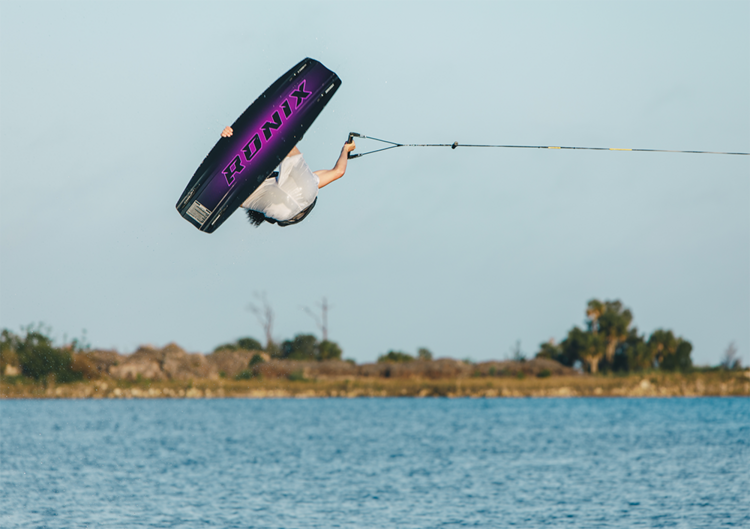The legacy of hangtime continues into its 20th season with the most reactive rockerline leaving the water and a smooth edge hold while riding on the water. A refined, freeride feel with our lightweight, advanced Blackout Construction. The best in elevation is even more impressive with our latest innovation – Pre-Tension Glass. The hurdle in wakeboards has always been that riders want a stiff, reactive take off – and a soft and subtle landing and trying to find that balance point of those two opposing spectrums has always been difficult. We created a machine that preloads the fibers before it goes into the mold creating a stiffer more reactive take off but still has a soft, predictable landing. A wider outline and a lightweight forgiving core, for the rider that wants a bigger sweet spot with added stability, that planes easier at slower speeds with an unmatched explosive vertical rockerline. Take the journey of flight to a new elevation.