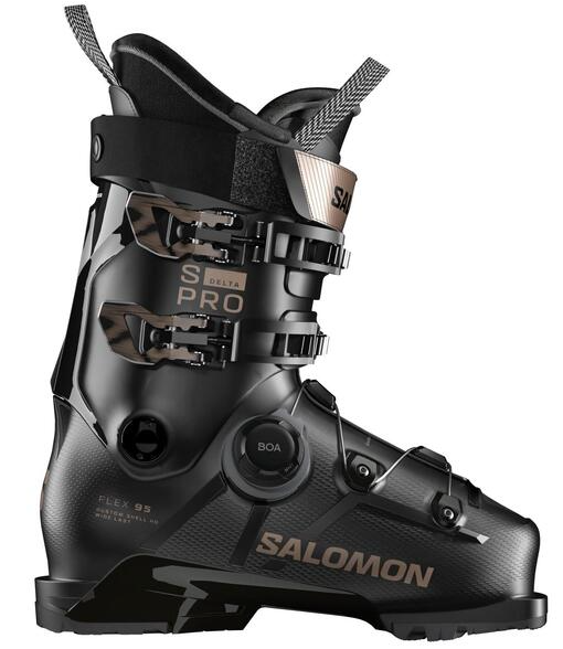 • Salomon's S/Pro Delta BOA® 95 blends a forgiving flex with the BOA® Fit System for a precise, micro-adjustable fit on a 102mm last. Tailored for intermediate women skiers, it strikes the perfect balance between control and comfort.