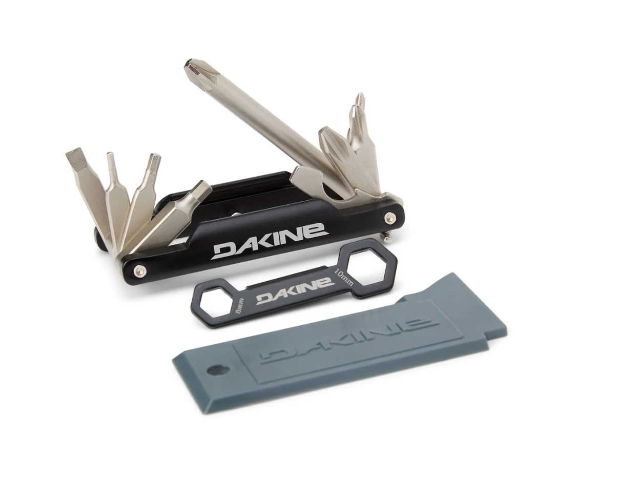 A true purpose-built backcountry multitool, the BC Tool is designed with the needs of the modern backcountry user in mind. An 8 and 10mm wrench plus all the essential bits and sizes—Phillips, Hex, Pozidrive, Flat Head—keep you from getting stranded deep out of bounds, but what really sets this tool apart is the multipurpose plastic scraper. Now that's something anyone who's spent time on a touring setup can attest to. Oh, and it wouldn't be complete without a way to pop the top on a beverage, hence the bottle opener.