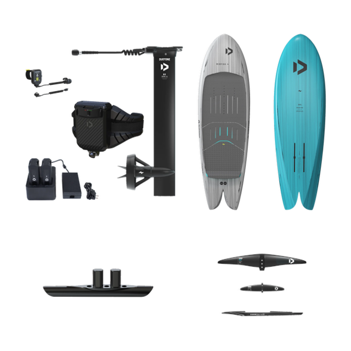 Also included in this package are the Duotone Mid Fish Foil Board, Duotone Fuselage Adapter and Duotone 74 3bs fuselage and the Duotone Glide 2.0 Wing Set