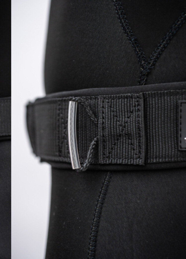 The Waist belt is a proper swim army of leashes. It has a large do/undo loop that does not go through the dynaema buckle (meaning you can step right into it without any hassle). It also has an additional dynaema loop on the hip which allows for smaller waists (use it as a buckle) or you can connect you wing to.