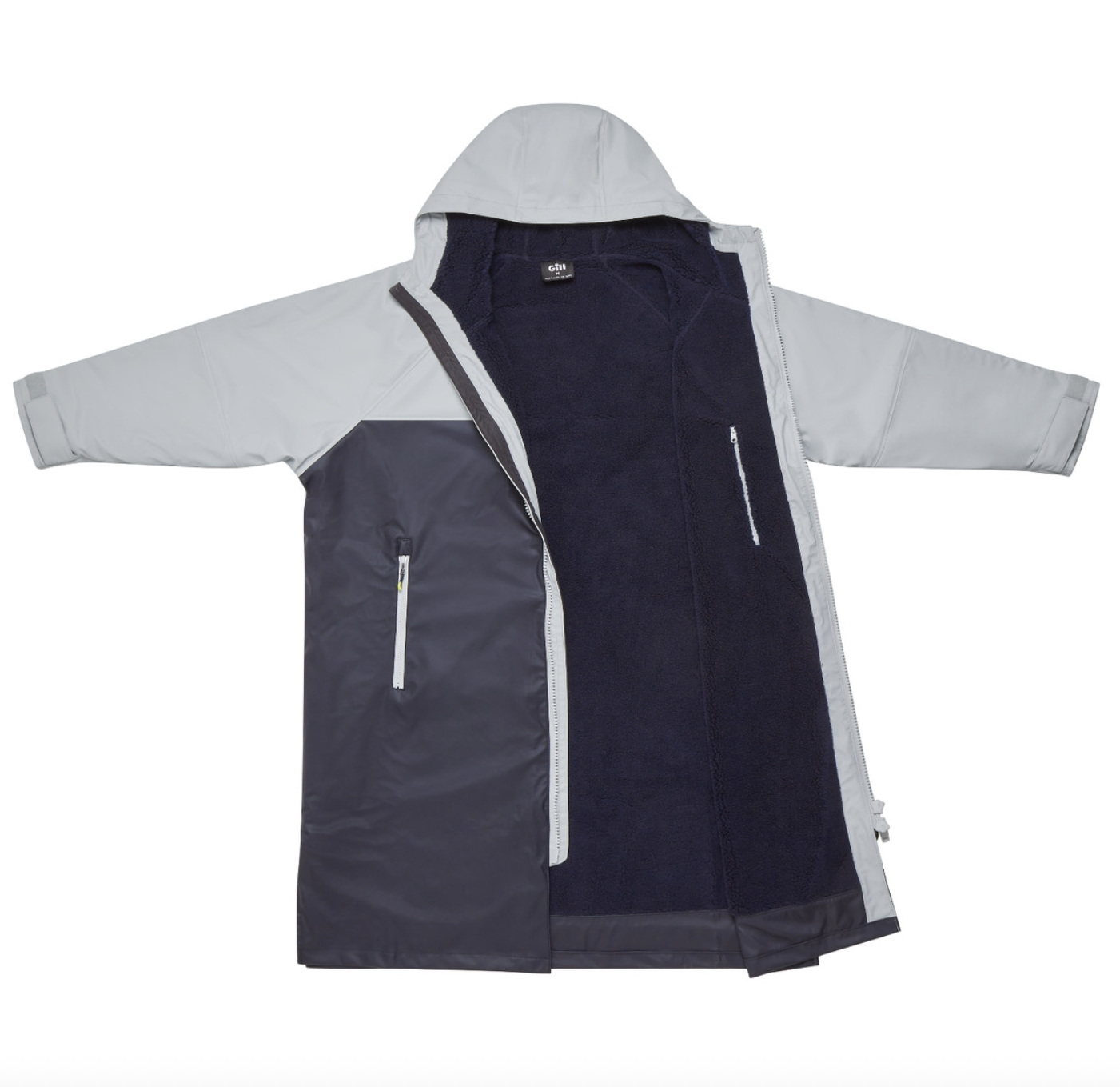 High loft thermal fleece lining to keep you warm even when wet. Long length and generous fit for full coverage and to allow you to change out of wet clothes. Handwarmer pockets. Internal zippered pocket and large internal stow pocket. Adjustable cuffs. 2-way zipper.