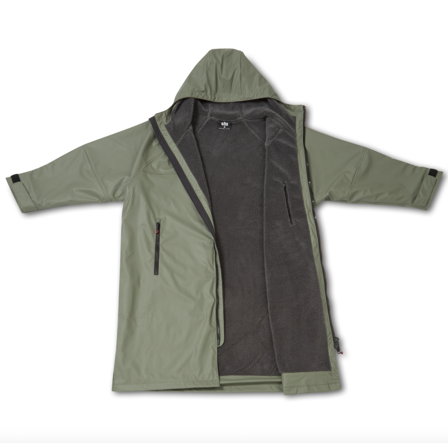 High loft thermal fleece lining to keep you warm even when wet. Long length and generous fit for full coverage and to allow you to change out of wet clothes. Handwarmer pockets. Internal zippered pocket and large internal stow pocket. Adjustable cuffs. 2-way zipper.