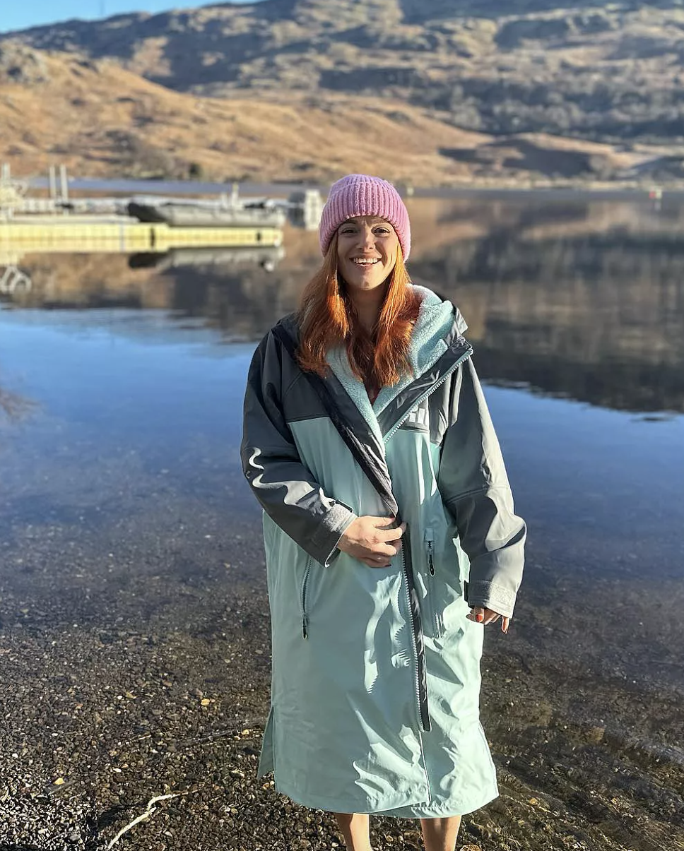 The Aqua Parka is intentionally oversized. It is designed to be loose enough for you to pull your arms inside for changing.