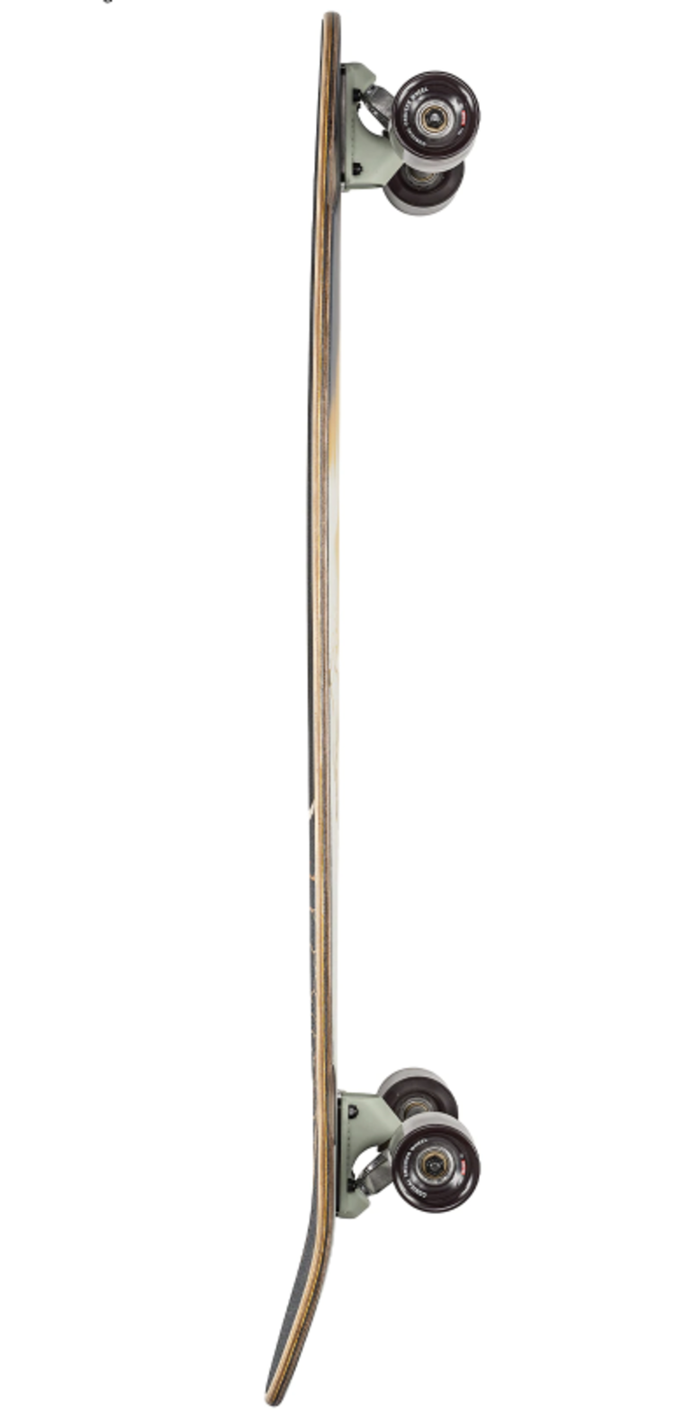 The Pinner Classic in Gold Vein is a classic pintail longboard with a kicktail, featuring deck and grip tape artwork by featured artist Sam Chirnside. The deck is constructed from Resin-8 hard rock maple, featuring mellow concave and embedded metal badge detail. Also featuring 180mm Slant reverse kingpin trucks, 65mm 78a wheels, and die-cut, printed grip tape.