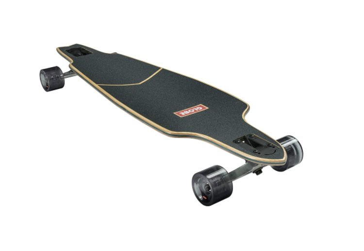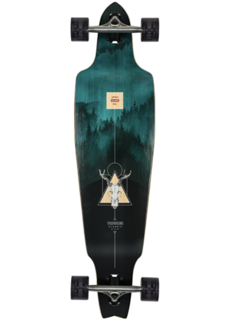 Our classic cut away longboard with flush mounted drop-through trucks. The Prowler Classic Longboard in Bamboo/Blue Mountains features a bamboo deck construction with mellow side-to-side concave, 180mm Slant aluminium reverse kingpin trucks and 70mm 78a Conical Cruiser wheels.