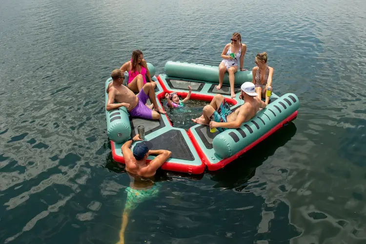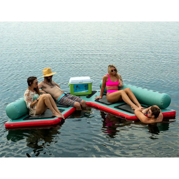 11.75’ x 6.5’ x 6” The Hawaii Atoll Series by HO Sports in the Ultimate Inflatable Lounge you need for those epic lake parties. Outfitted with pontoon style backrests for comfortable lounging and a soft Marine grade EVA deck pad with non-slip traction surface, fill the seats with your friends, strap on a cooler and enjoy the summer like none other. The Atoll’s work great solo, but just like the island chain, they’re designed to connect to other Atolls for the ultimate group lounge party experience. Their easy to use connectors provide tight, secure connections between Atolls. The dual layer neoprene padded carry handles and 3.8mm Stainless D rings give you added versatility for easy linking to other floats, boats and anchors. The deck of the Atoll is built with 6” Thick, Durable, Welded Dropstitch Construction, so it’s seamless, stable and rigid at proper PSI. This heavy-duty material can withstand being bumped, scraped, dropped with low risk of damage. Atoll’s fold and roll for super compact for easy storage and transport when deflated. The “Big Atoll” comes in at 11.75’ x 6.5’, while the “Little Atoll is sized at 11.75’ x 3.5’. Forget the endless hand-pumping, each Hawaii Atoll comes with an Electic Pump with built in PSI guage for super easy automatic inflation. Also included, a Carry-Tote for easy transport and a PVC repair kit. Start your own island party with the Hawaii Atoll inflatable lounges from HO Sports. • Electric Pump included for easy inflation and deflation • Multiple Backrests for comfortable lounging • Strategically designed EVA placement for tight and easy packing • Marine EVA Deck Pad - Non Slip Traction Surface • 15cm(6in) thick Welded Dropstitch Construction • Dual Layer Neoprene Padded Carry Handles • 3.8mm Stainless D-Rings • Carry tote included