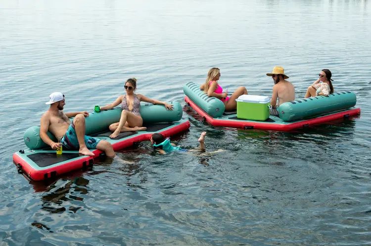 11.75’ x 3.5’ x 6” The Hawaii Atoll Series by HO Sports in the Ultimate Inflatable Lounge you need for those epic lake parties. Outfitted with pontoon style backrests for comfortable lounging and a soft Marine grade EVA deck pad with non-slip traction surface, fill the seats with your friends, strap on a cooler and enjoy the summer like none other. The Atoll’s work great solo, but just like the island chain, they’re designed to connect to other Atolls for the ultimate group lounge party experience. Their easy to use connectors provide tight, secure connections between Atolls. The dual layer neoprene padded carry handles and 3.8mm Stainless D rings give you added versatility for easy linking to other floats, boats and anchors. The deck of the Atoll is built with 6” Thick, Durable, Welded Dropstitch Construction, so it’s seamless, stable and rigid at proper PSI. This heavy-duty material can withstand being bumped, scraped, dropped with low risk of damage. Atoll’s fold and roll for super compact for easy storage and transport when deflated. The “Big Atoll” comes in at 11.75’ x 6.5’, while the “Little Atoll is sized at 11.75’ x 3.5’. Forget the endless hand-pumping, each Hawaii Atoll comes with an Electic Pump with built in PSI guage for super easy automatic inflation. Also included, a Carry-Tote for easy transport and a PVC repair kit. Start your own island party with the Hawaii Atoll inflatable lounges from HO Sports. • Electric Pump included for easy inflation and deflation • Backrest for comfortable lounging • Strategically designed EVA placement for tight and easy packing • Marine EVA Deck Pad - Non Slip Traction Surface • 15cm(6in) thick Welded Dropstitch Construction • Dual Layer Neoprene Padded Carry Handles • 3.8mm Stainless D-Rings • Carry tote included