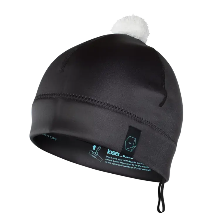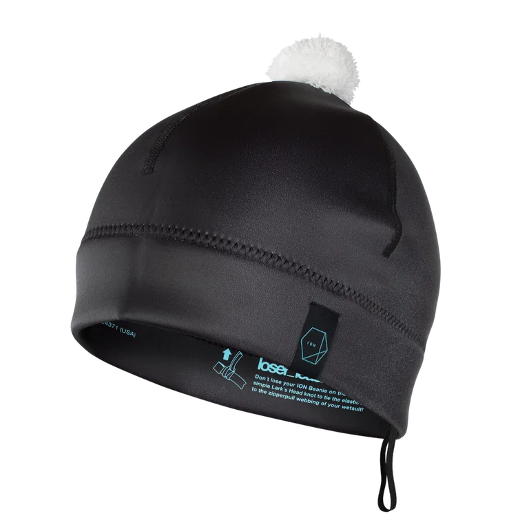 Elasticated loop on the inside of the beanie: Keep your ION Beanie safe on the water! Use a simple Lark‘s Head knot to tie the Loser_Leash to the zipper pull webbing of your wetsuit.