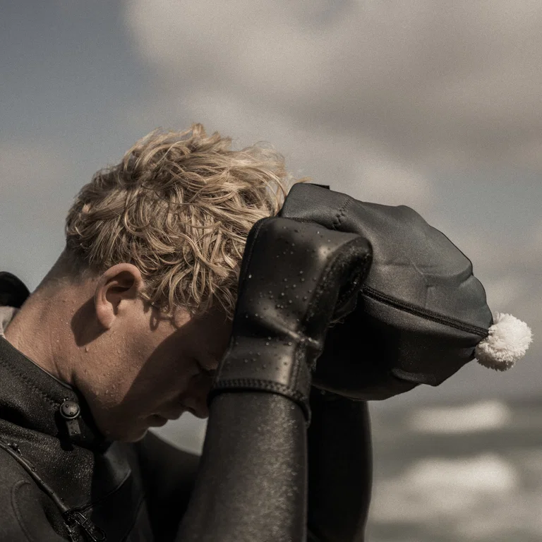 Neoprene beanie keeps your head warm and cosy on the beach or on water