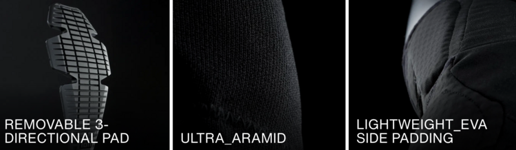 Aramid is an extremely robust and sturdy fiber. This amped up version more tightly woven than it's predecessor. Thanks to it tear-resistance and tenstile strength it finds application in all kinds of protective gear and keeps up with anything from sharp rocks to high-speed crashes.