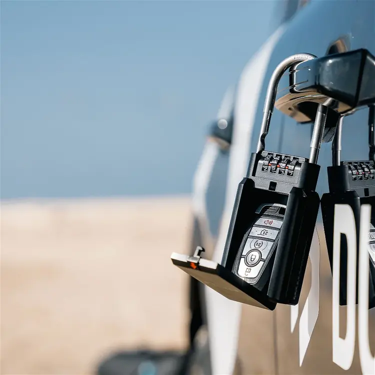 • Lock your keys and valuables in this safe. Including a 4 digit combination lock and 8mm stainless steel shackle to secure to your car's door handles.