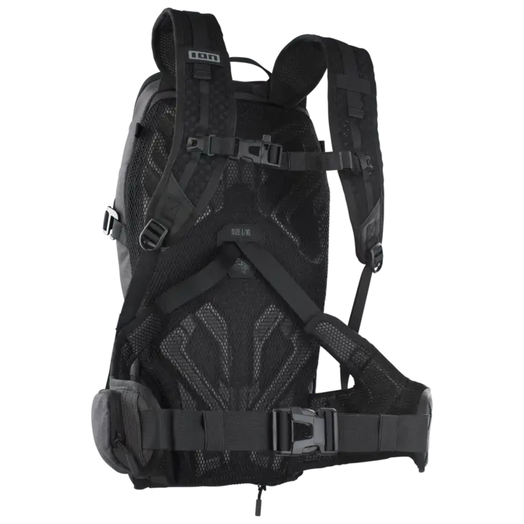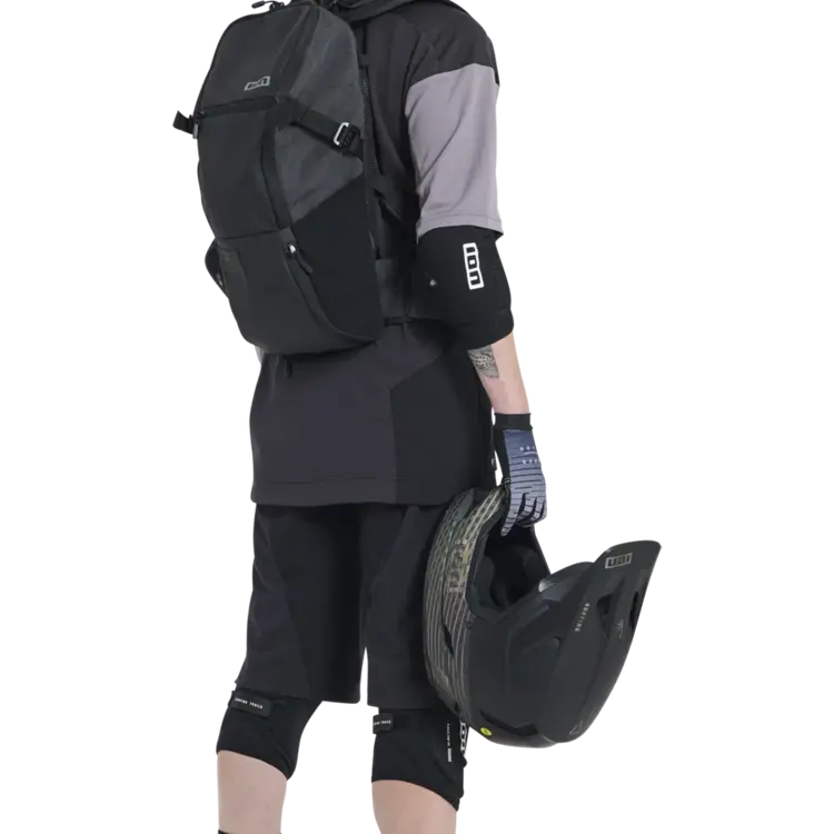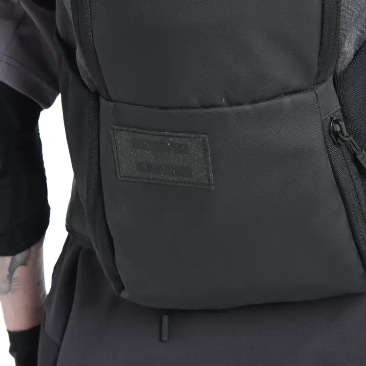 The SCRUB 14 is the result of all our wishes packed together into one backpack. That means a minimalistic design, integrated back protection, lots of storage space and comfort. The V_String Carrying_System automatically adapts to your anatomy by only pulling one strap. The Farfalle_Joint that connects the shoulder straps to the backpacks lets you move freely. In case your going gets a bit tough & rough we integrated a lightweight multi-impact compliant EPP back protector for your safety. The big storage compartment can be accessed through one big zipper that opens on the whole front. Small flaps hold the zipper in place if you just want to access the upper part of the backpack. The compartment features extras like a goggle pouch, space for a drinking bladder, eMTB battery or a small laptop/tablet and can be divided into two part. The lower part offers enough space for dirty or wet clothes and can be accessed through the side zipper. On top the SCRUB 14 offers enough space for your helmet (Home_of_Helmets) and pads aswell as more small pockets on the removable hip-belt. As an extra this backpack comes with raincover and a tool pouch.