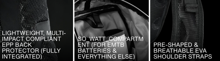 E-MTB? So Watt? Just grab a second battery to increase the range of your ride and store it in the particular compartment.