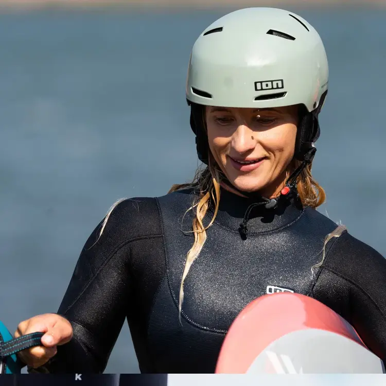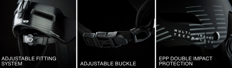 Ergonomic and size adjustable fitting system which wraps around the riders head for maximum comfort.